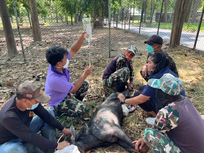 สำหรับเลียงผาตัวดังกล่าวที่เจ้าหน้าที่เข้าช่วยเหลือในสภาพร่างกายที่อ่อนแรง เจ้าหน้าที่ให้การรักษาตามอาการ โดยได้เจาะเลือดเพื่อตรวจหาสาเหตุอย่างละเอียด ซึ่งผลตรวจเลือดทางห้องปฏิบัติออกเมื่อวันที่ 26 เมษายนที่ผ่านมา พบว่าเลียงผามีภาวะติดเชื้อในกระแสเลือด มีภาวะโลหิตจาง มีภาวะสภาพร่างกายขาดน้ำและภาวะของโรคไต ทั้งนี้สัตวแพทย์ทำการรักษาเฝ้าระวังและติดตามอาการมาอย่าใกล้ชิดจนกระทั่งเมื่อเวลา 03.00 น.ที่ผ่านมาเลียงผาได้สิ้นใจลง จากนี้จะได้มีการผ่าพิสูจน์สาเหตุการตาย ก่อนจัดการซากตามหลักวิชาการต่อไป