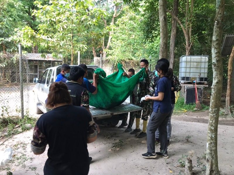 เจ้าหน้าที่ศูนย์ช่วยเหลือสัตว์ป่าที่ 1 (นครนายก) จึงร่วมกับสัตวแพทย์จาก สบอ.1 (ปราจีนบุรี) และเจ้าหน้าที่อุทยานแห่งชาติเขาใหญ่ ขญ 21 เขื่อนคลองท่าด่านร่วมกันเคลื่อนย้าย มาไว้ที่ศูนย์ช่วยเหลือสัตว์ป่าที่ 1 (นครนายก) เพื่อทำการรักษา