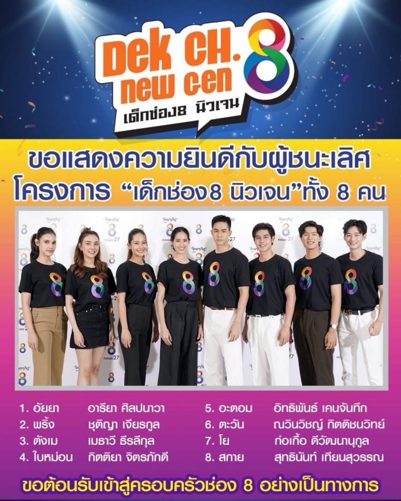 น้องๆเหล่านี้จะได้ร่วมเซ็นสัญญากับทางสถานีโทรทัศน์ช่อง 8 ประเดิมด้วยละคร วิญญาณแพศยาและละครใหม่อีกหลายเรื่อง รับประกันได้เลยว่าใครที่เป็นเด็กช่อง8 มีผลงานสู่สายตาประชาชนทันที#เด็กช่อง8 #dekch8newgen