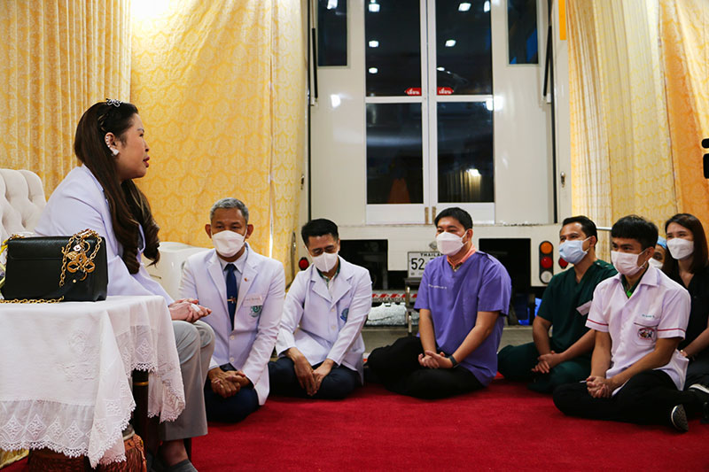 โอกาสนี้ พระราชทานพระวโรกาสให้ทีมสัตวแพทย์อาสาจุฬาภรณ์เฝ้า รับพระราชทานพระดำรัส เพื่อให้ร่วมแรงร่วมใจขับเคลื่อนโครงการสัตว์ปลอดโรค คนปลอดภัย จากโรคพิษสุนัขบ้าตามพระปณิธานฯ โดยมีใจความตอนหนึ่งว่า “… ต้องขอบคุณน้องๆทุกคนที่มาช่วยสัตว์ของประชาชนรวมทั้งสัตว์เร่ร่อนที่ไม่มีเจ้าของ อันนี้ก็เป็นการทำบุญใหญ่ คือว่าเราช่วยสุนัขก็โยงไปถึงว่าเราต้องช่วยคนด้วย เพราะว่าคนที่เขาเป็นเจ้าของเขาก็จะปลื้มใจ ในการที่พวกเราเอาใจใส่พวกเขา และการที่พวกเรามาออกหน่วยอย่างนี้ถือได้ว่า พวกเรานี้ได้เข้าถึงประชาชนจริงๆ … พี่เชื่อว่าน้องๆ ทุกคนก็คงเต็มกำลัง กับการที่เราช่วยกันทำนี้ พี่อยากให้ทุกคนต้องสามัคคีกันไว้ …”
