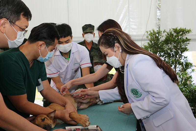พร้อมกันนี้ทรงฉีดวัคซีนป้องกันโรคพิษสุนัขบ้าเพื่อสร้างภูมิคุ้มกันให้แก่สุนัขของประชาชนและทรงร่วมผ่าตัดทำหมันสุนัขในวันนี้รวมจำนวน 6 ตัว เพื่อควบคุมและลดจำนวนประชากรสัตว์ที่อาจเป็นพาหะนำโรคพิษสุนัขบ้ามาสู่คนได้ นับเป็นอีกหนึ่งพระภารกิจสำคัญในการนำพระประสบการณ์ที่สั่งสมมาทรงงานร่วมกับทีมสัตวแพทย์ทุกครั้งที่มีการออกหน่วยสัตวแพทย์อาสาจุฬาภรณ์ในพื้นที่ต่างๆ ของประเทศโดยวันนี้มีสุนัขและแมวได้รับการฉีดวัคซีนป้องกันโรคพิษสุนัขบ้าและ ผ่าตัดทำหมัน รวมทั้งสิ้นจำนวน106 ตัว