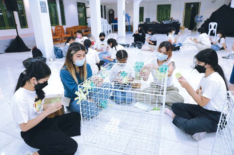 งานนี้ได้รับความสนใจจากเยาวชนเจ้าบ้านสืบสานวัฒนธรรมที่ให้การตอบรับเข้าร่วมมีจำนวนกว่า 20 ชีวิต กิจกรรมนี้มีพี่ๆ กลุ่มนักศึกษาจากสถาบันเทคโนโลยีพระจอมเกล้าเจ้าคุณทหารลาดกระบังมาเป็นพี่เลี้ยงและสอนการสาธิตการประดิษฐ์โคมไฟจากขวดน้ำพลาสติก โดยเริ่มจากการแบ่งกลุ่มเยาวชนออกเป็นกลุ่มละ 6-7 คน จากนั้นแต่ละกลุ่มได้ร่วมกันตัดขวดพลาสติกให้เป็นรูปแบบของดอกไม้ตามจินตนาการ และนำไปพ่นสีเพื่อเพิ่มสีสันความสวยงาม โดย น้องฟ้าใส-พิทยาภรณ์ ผลงาน อายุ 14 ปี ม.4 โรงเรียนศึกษานารี เผยความรู้สึกที่เข้าร่วมกิจกรรมในครั้งนี้ว่า “กิจกรรมวันนี้สนุกมากค่ะ เป็นกิจกรรมที่ได้ประโยชน์ ได้ความรู้เกี่ยวกับขยะที่นำมารีไซเคิลได้ แล้วก็ประเภทในเชิงลึกเข้าไปอีก หนูจะนำความรู้ที่ได้ในวันนี้ไปแนะนำคนที่บ้าน ขอบคุณไทยเบฟมากๆ ที่จัดกิจกรรมดีๆ แบบนี้ หนูอยากให้โครงการนี้ไปจัดตามโรงเรียนด้วยค่ะ”