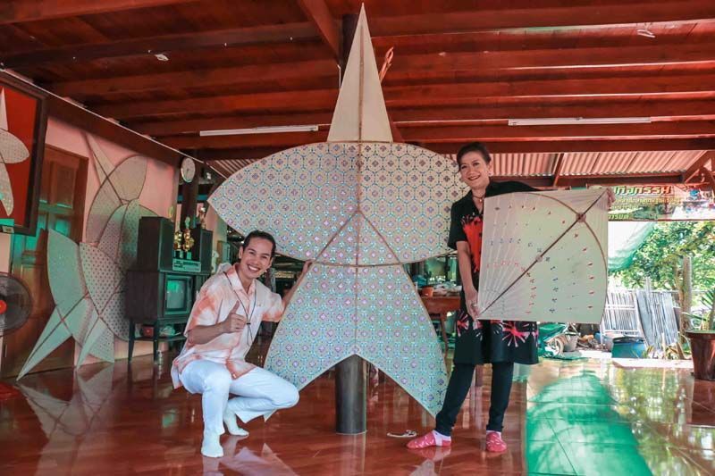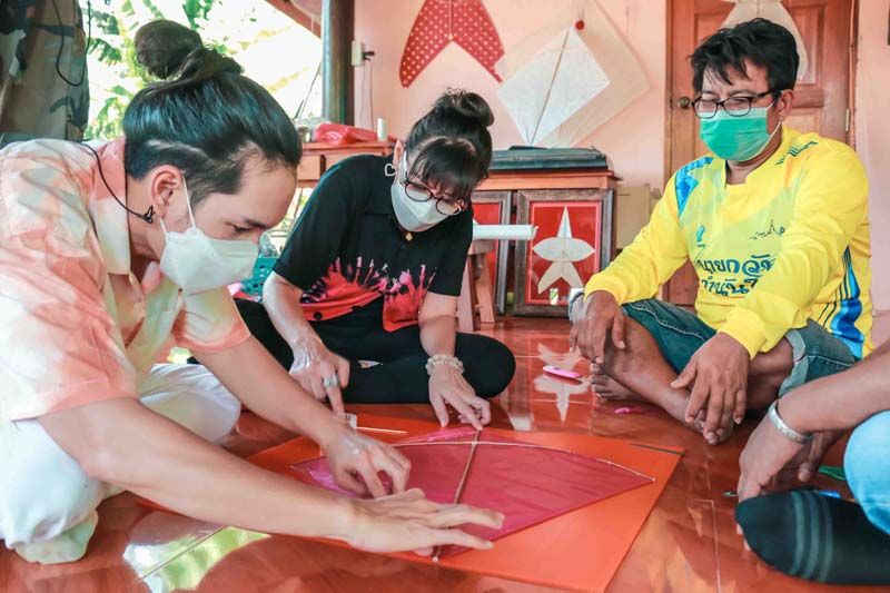 ต่อด้วยมาบ้านยายเทียบ ดูการทำสบู่ตาล โดยมีเนื้อตาลเป็นพระเอก งานนี้ยายเทียบผู้อารมณ์ดีตลอดเวลา…เครมเลยว่าใช้แล้วดีจริง ชุมชนนี้ไม่ได้มีดีแค่นี้นะ แต่ยังเป็นชุมชนที่ยังคงรักษาสืบทอดภูมิปัญญาการทำว่าวไทยอีกด้วย งานนี้เลยชวนกันมาวาร์ปที่ ศูนย์เรียนรู้และการอนุรักษ์ว่าวไทย ที่มีการทำว่าวจุฬาว่าวดุ๊ยดุ่ย ว่าวปักเป้า และว่าวอีรุ้ง งานนี้น้อยและแห้วเลยได้เรียนรู้การทำว่าวอีรุ้ง แถมตบท้ายด้วยการไปเล่นว่าว วิ่งเล่นไปมาจนลืมวัยกันเลยทีเดียว..!!
