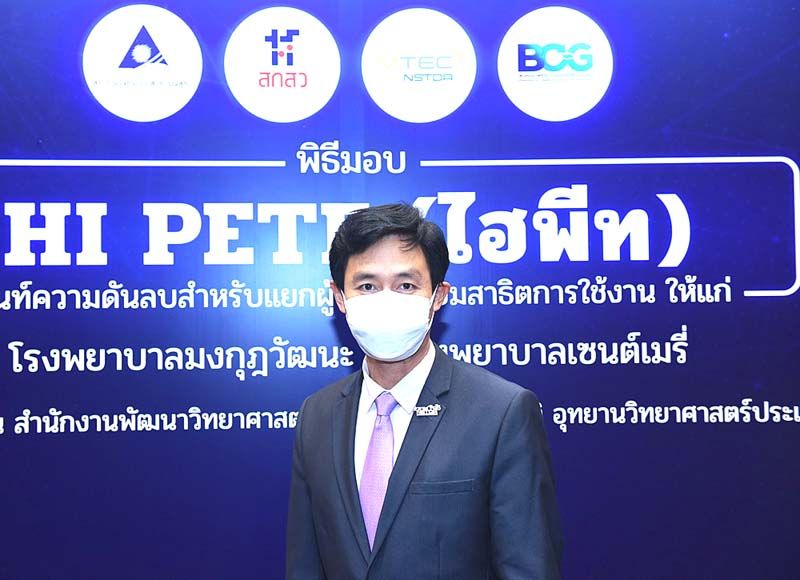 โดย สวรส. ได้ทำการส่งมอบนวัตกรรม HI PETE (ไฮพีท)เต็นท์ความดันลบสำหรับแยกผู้ป่วย (Patient Isolation Chamberfor Home Isolation) ให้แก่ โรงพยาบาลมงกุฎวัฒนะและ โรงพยาบาลเซนต์เมรี่ เพื่อสนับสนุนการปฏิบัติงานของบุคลากรทางการแพทย์รับมือสถานการณ์การระบาดของโรคโควิด-19ที่อาคารสำนักงานกลาง สำนักงานพัฒนาวิทยาศาสตร์และเทคโนโลยีแห่งชาติ (สวทช.) เมื่อวันที่ 2 พฤษภาคม 2565 ที่ผ่านมา