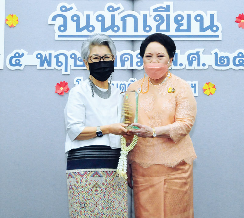 ท่านผู้หญิงวิวรรณ วรวรรณ เศรษฐบุตรมอบรางวัลให้กับ คุณหญิงจำนงศรี หาญเจนลักษณ์