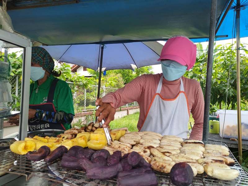 สำหรับมันม่วง และมันวสำปะหลัง เฉลี่ยจะขาย อย่างละ 15 กิโลกรัมต่อวัน ส่วนกล้วยเฉลี่ย 30 หวีต่อวัน โดยร้านจะเปิดขายทุกวันจันทร์-ศุกร์ ตั้งแต่เวลา 11.00 น. จนกว่าจะหมดอยู่ที่เวลาประมาณ 17.00 น.
