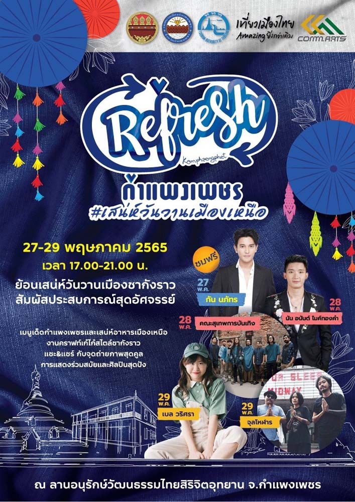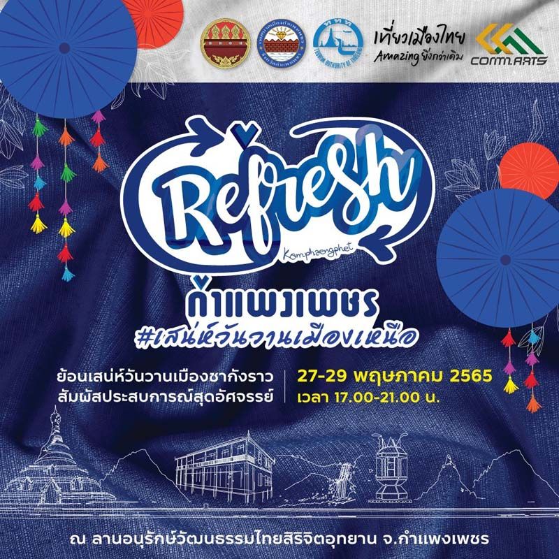 ททท.สนับสนุนจัดงาน “Refresh กำแพงเพชร” #เสน่ห์วันวานเมืองเหนือ 27-29 พ.ค.65 เน้นสร้างประสบการณ์ ชวนสัมผัสเสน่ห์เมืองชากังราว กระตุ้นการท่องเที่ยวเมืองรอง