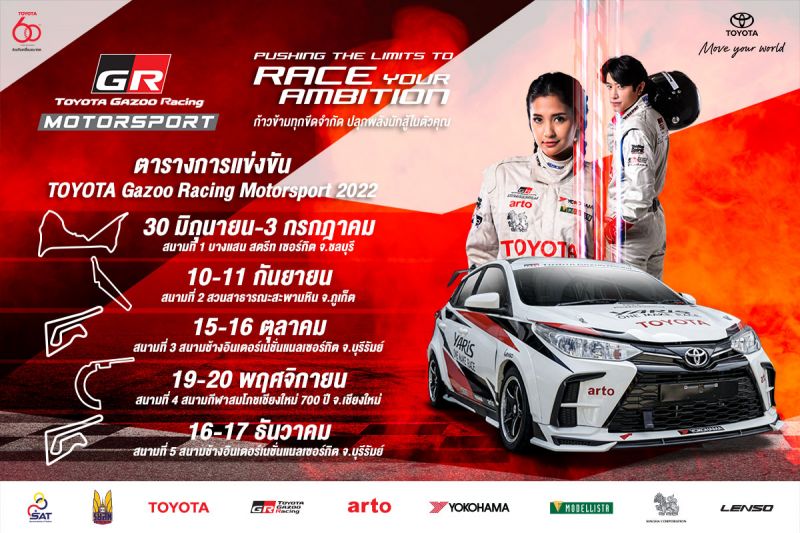 แฟนกีฬามอเตอร์สปอร์ตติดตามความสนุกของ “Toyota Gazoo Racing Motorsport 2022” ทั้ง 5 สนาม ประเดิมสนามแรกระหว่างวันที่ 30 มิถุนายน – 3กรกฎาคมกับการกลับมาในรอบ 2 ปี ของการแข่งขันแบบสตรีทเซอร์กิตริมชายหาดบางแสน ในงานบางแสน กรังด์ปรีซ์จ.ชลบุรี, สนามที่2 วันที่10-11 กันยายนจ.ภูเก็ต, สนามที่3วันที่ 15-16 ตุลาคม จ.บุรีรัมย์, สนามที่4วันที่19-20 พฤศจิกายน จ.เชียงใหม่ และสนามที่5วันที่ 17-18 ธันวาคม จ.บุรีรัมย์