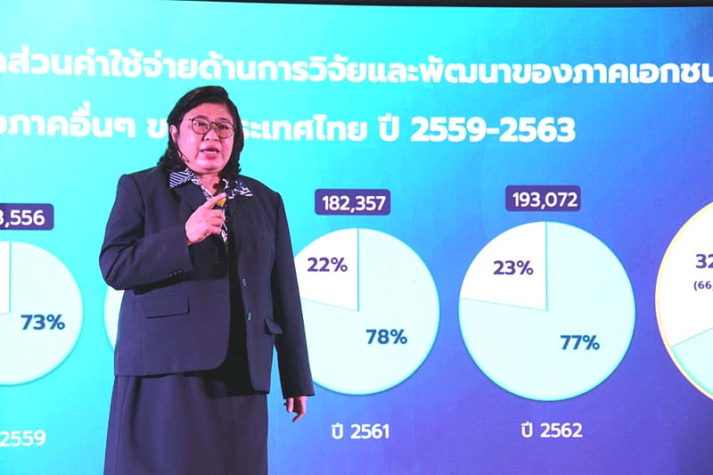 จากข้อมูลการสำรวจค่าใช้จ่ายด้านการวิจัยและพัฒนา ประจำปี 2564 (สำรวจข้อมูลปี’63) ที่สำนักงานการวิจัยแห่งชาติ (วช.) ได้ทำการสำรวจนั้น พบว่า ภาพรวมตัวเลขการลงทุนวิจัยและพัฒนาเติบโตขึ้น เป็นจำนวนรวมกว่า 208,009 ล้านบาท โดยเฉพาะอย่างยิ่งสัดส่วนการลงทุนของภาครัฐที่เพิ่มมากขึ้น คิดเป็นจำนวน 66,304 ล้านบาท และภาคเอกชน 141,705 ล้านบาท โดยสัดส่วนภาครัฐต่อภาคเอกชนอยู่ที่ร้อยละ 32 และร้อยละ 68 ตามลำดับ ซึ่งการลงทุนจากภาครัฐเพิ่มขึ้นจากปีก่อนหน้าถึงเกือบร้อยละ 10 สำหรับภาพรวมค่าใช้จ่ายด้านการวิจัยและพัฒนาของประเทศต่อจีดีพียังเติบโตต่อเนื่องอยู่ที่ร้อยละ 1.33 จากปีก่อนหน้าที่อยู่ที่ร้อยละ 1.14