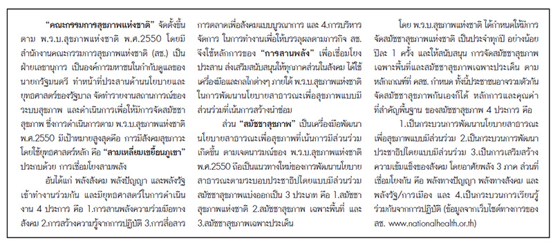 “ปลายปี 2563 คณะกรรมการสุขภาพแห่งชาติ ขับเคลื่อนเรื่องสมัชชาสุขภาพ กทม.เป็นครั้งแรก ภาคีเครือข่ายสมัชชาสุขภาพกรุงเทพมหานคร เห็นตรงกันว่า การจัดการหาบเร่แผงลอยเป็นส่วนหนึ่งของการพัฒนาให้กรุงเทพมหานครเป็นเมืองแห่งสุขภาวะเพื่อทุกคน กำหนดเป้าหมายว่าใน 5 ปีข้างหน้า การจัดการหาบเร่แผงลอยในทุกพื้นที่จะดำเนินการโดยใช้แนวทางการบริหารจัดการระดับพื้นที่โดยการมีส่วนร่วมของผู้มีส่วนได้ส่วนเสียทุกภาคส่วน คณะกรรมการติดตามการขับเคลื่อนมติที่เราก็นั่งอยู่ด้วย ขอให้ทำแซนด์บ็อกซ์ (Sandbox) ในแง่การบริหารจัดการหาบเร่แผงลอยในพื้นที่ แต่ต้องพักไว้ก่อน รอเลือกตั้งแล้วค่อยเคลื่อนต่อ