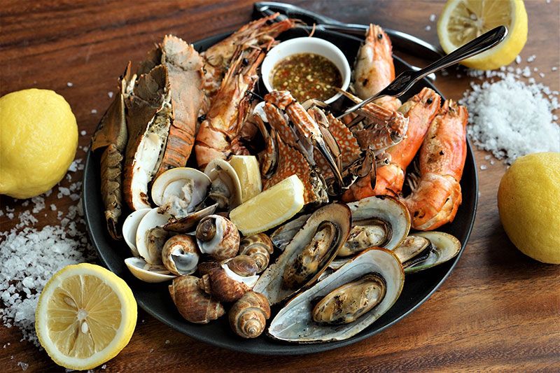 แล้วมาแซ่บต่อกับหลากหลายเมนูอาหารทะเลจากซีฟู้ดวอลล์ (Seafood Wall) อาทิ กุ้งแม่น้ำ กั้งกระดานปูม้า หอยแมลงภู่ ปลาหมึก และหอยหลอด มีมาให้เลือกอย่างจุใจ เพื่อนำไปให้เชฟปรุงสดไม่ว่าจะเป็น ผัดพริกไทยดำผัดสมุนไพร ผัดกระเทียมหรือเลือกนำไปเผาจิ้มนํ้าจิ้มซีฟู้ดแซ่บๆ ได้ตามใจชอบ