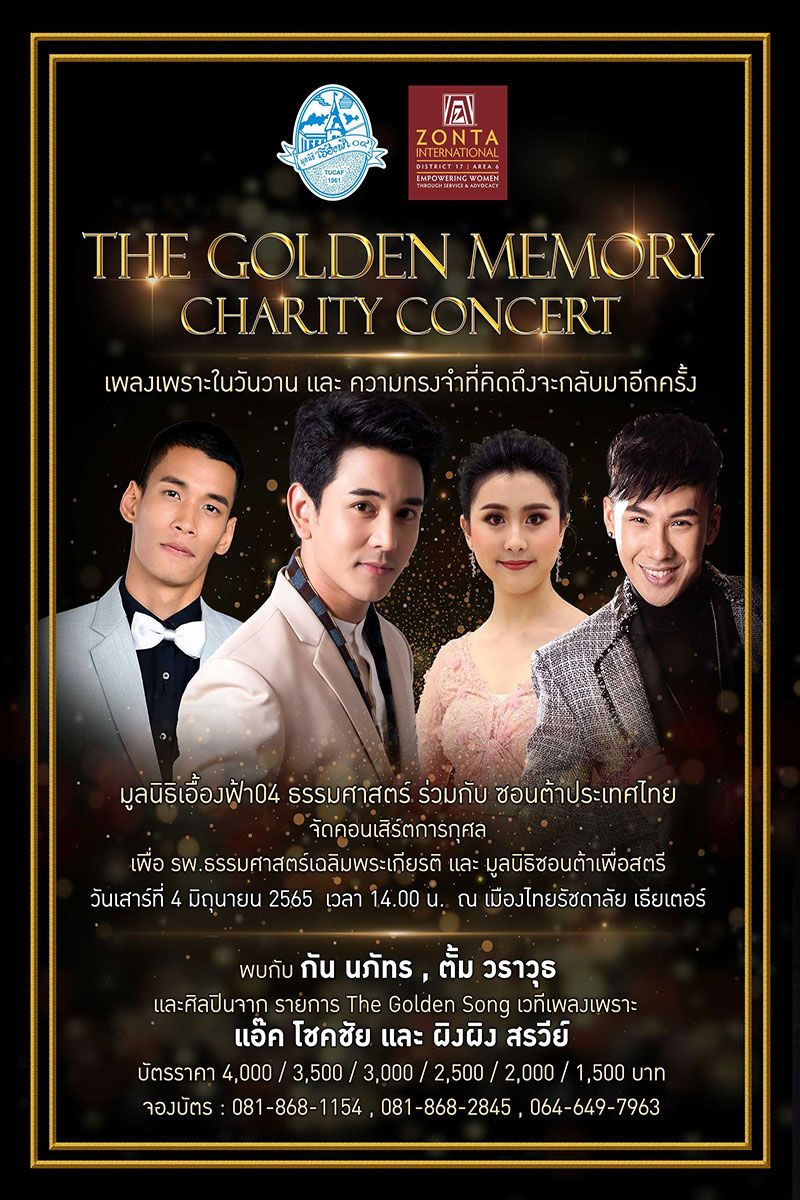 ขอเชิญชวนเพื่อนๆชาว ‘ธรรมศาสตร์’ ร่วมย้อนวันวานและความทรงจำสนับสนุนคอนเสิร์ตการกุศล ‘THE GOLDEN MEMORY CHARITY CONCERT’ จัดโดยมูลนิธิเอื้องฟ้า 04 ธรรมศาสตร์ ร่วมกับ สมาคมซอนต้าประเทศไทย เพื่อสมทบทุน รพ.ธรรมศาสตร์เฉลิมพระเกียรติ และ มูลนิธีซอนต้าเพื่อสตรี ในวันเสาร์ที่ 4 มิถุนายน 2565 เวลา 14:00 น. ณ เมืองไทยรัชดาลัย เธียเตอร์ พบกับ กัน นภัทร ,ตั้ม วราวุธ และศิลปินจากรายการ The Golden Song เวทีเพลงเพราะ แอ๊ค โชคชัย และ ผิงผิง สรวีย์ บัตรรารา 4,000/3,500/2,500/2,000/1,500