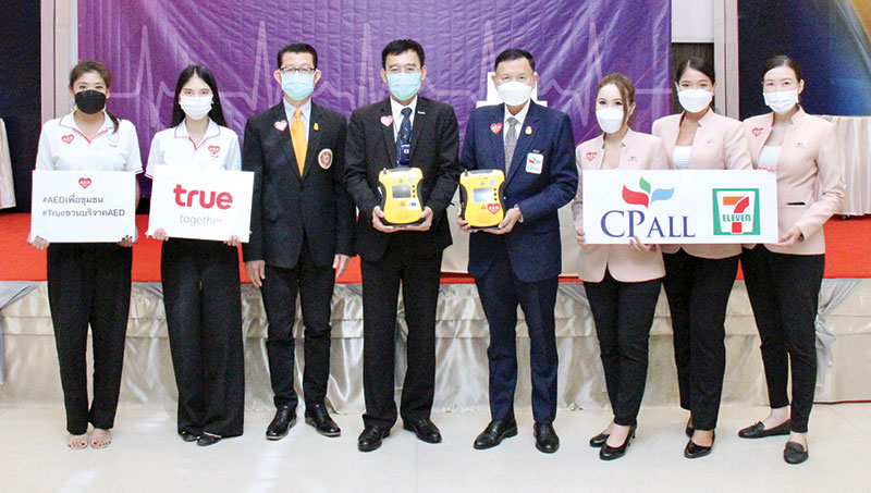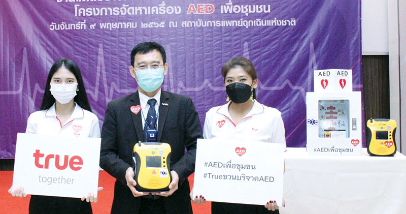 อีกหนึ่งภารกิจคืนลมหายใจเพื่อนมนุษย์ให้ทุกชีวิตปลอดภัย…สถาบันการแพทย์ฉุกเฉินแห่งชาติ โดย เรืออากาศเอกนายแพทย์อัจฉริยะแพงมา เลขาธิการฯ พร้อมด้วยมูลนิธิการแพทย์ฉุกเฉินแห่งชาติในพระราชูปถัมภ์ โดย ศาสตรเมธีดร.สุปรีดิ์ วงศ์ดีพร้อม รองประธานกรรมการ,บมจ. ซีพี ออลล์ โดย ณรงค์ศักดิ์ ภูมิศรีสอาด ที่ปรึกษาคณะเจ้าหน้าที่บริหาร และกลุ่มทรู โดย ประพาฬพงษ์มากนวล รองผู้อำนวยการฝ่ายกิจกรรมองค์กรเพื่อสังคม ทรู ปลูกปัญญา ลงนามบันทึกข้อตกลงความร่วมมือใน “โครงการจัดหาเครื่องฟื้นคืนคลื่นหัวใจด้วยไฟฟ้าชนิดอัตโนมัติ (AED) เพื่อชุมชน”ซึ่งจะนำไปติดตั้งในร้านเซเว่น-อีเลฟเว่น ทั่วประเทศ