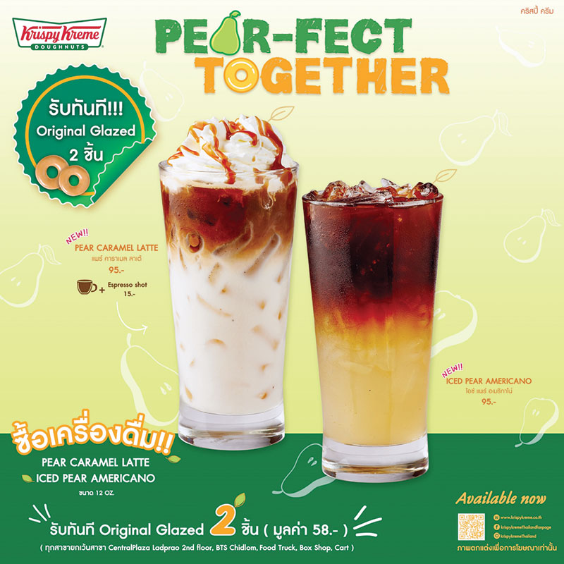 คริสปี้ ครีม ชวนชิมเมนูพิเศษ“PEAR-FECT TOGETHER”อร่อยใหม่ 2 สไตล์ Iced Pear Americano และ Pear Caramel Latte แก้วละ 95 บาท ถึง 30 มิ.ย.ที่ ร้านคริสปี้ ครีม สาขาใกล้บ้านคุณ