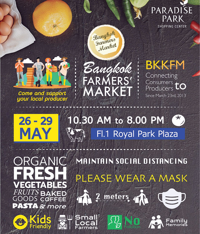 ชวนช็อปสินค้าสุขภาพและสิ่งแวดล้อมสินค้าออร์แกนิก ที่สดใหม่ สะอาด และปลอดภัยในงาน “Bangkok Farmers Market”ถึง 29 พ.ค.ที่ศูนย์การค้าพาราไดซ์ พาร์ค ถนนศรีนครินทร์