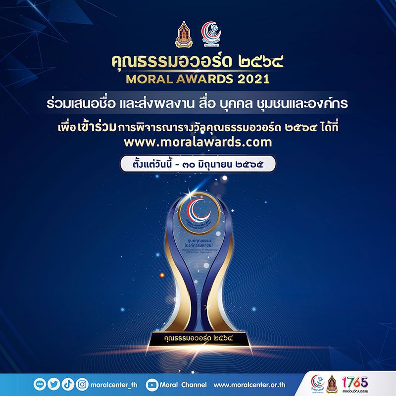 ศูนย์คุณธรรม (องค์การมหาชน) เปิดตัว “รางวัลคุณธรรมอวอร์ด ปี 2564” ตอบโจทย์การขับเคลื่อนแผนปฏิรูปประเทศด้านวัฒนธรรม กีฬา แรงงานและการพัฒนาทรัพยากรมนุษย์ ในกิจกรรมปฏิรูปด้านการส่งเสริมคุณธรรม จริยธรรมในทุกช่วงวัย ผ่านการปฏิรูปอุตสาหกรรม บันเทิงและการใช้กลไกร่วมระหว่างภาครัฐและเอกชนในการขับเคลื่อน พร้อมผลักดันให้ “คนดีมีพื้นที่ยืน ความดีมีพื้นที่ในสังคม” ขยายผลสู่ Hall of Fame ในรูปแบบออนไลน์
