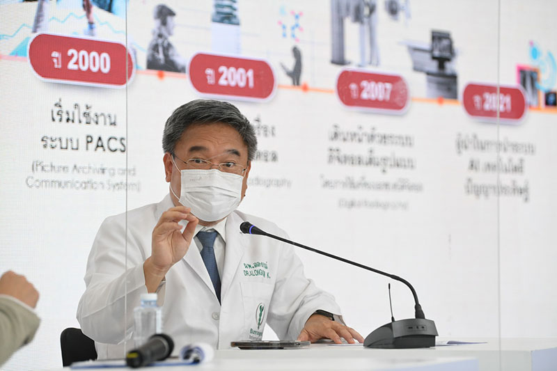 สำหรับการนำ AI มาใช้ในด้านรังสีวิทยาที่บำรุงราษฎร์นั้น ถือว่ามีความโดดเด่นมากเนื่องจากมีการนำเทคโนโลยีมาใช้เป็นแผนกแรก ๆ ในโรงพยาบาล เรียกได้ว่า ‘รังสีแพทย์’ เป็นแถวหน้าด้านการแพทย์ในยุคดิจิทัล ซึ่งหากมองย้อนกลับไปตั้งแต่ปี 2543 หรือ 22 ปีก่อน บำรุงราษฎร์ได้เริ่มใช้งานระบบ Picture Archiving and Communication System (PACS) ซึ่งเป็นระบบที่ใช้ในการจัดเก็บรูปภาพทางการแพทย์ (Medical Images) หรือภาพถ่ายทางรังสี โดยมีการรับส่งข้อมูลภาพในรูปแบบดิจิทัลเป็นครั้งแรกต่อมาในปี 2544 นับเป็นปีแรกที่เริ่มนำเทคโนโลยีการถ่ายภาพแบบ Computed Radiography คือการใช้แผ่นรับภาพหรือเรียกว่า image plate แทนการใช้ฟิล์ม โดยมีเครื่องอ่านภาพ (image reader) เพื่ออ่านข้อมูลบนแผ่นก่อนนำส่งผ่านระบบคอมพิวเตอร์ โดยแพทย์สามารถอ่านผลได้ทั้งการสั่งพิมพ์ฟิล์มหรือบนคอมพิวเตอร์และต่อมาในปี 2550 ได้พัฒนาเป็นดิจิตัลเต็มรูปแบบ โดยใช้ระบบเซ็นเซอร์หรือตัวรับภาพขนาดใหญ่ (detector) แทนการใช้แผ่นรับภาพแบบเดิม โดยประมวลผลและทราบผลภาพในเวลาเพียงเสี้ยววินาทีโดยไม่ต้องมีอุปกรณ์อ่านข้อมูล