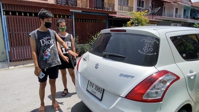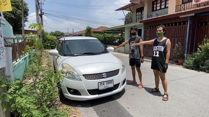 ต่อมาเมื่อเวลา 12.30 น.วันที่ 30 พ.ค.65 ผู้สื่อข่าวลงพื้นที่บริเวณหมู่บ้านพฤกษา 3 ซอย 124/1 ตำบลพิมลราช อำเภอบางบัวทอง จังหวัดนนทบุรี เพื่อสอบถามนายชัยชนะ ริ้วทอง อายุ 30 ปี เจ้าของรถยนต์เก๋งยี่ห้อ Suzuki Swift สีขาวหมายเลขทะเบียน กง 3968 สิงห์บุรี สีขาว จอดไว้บริเวณข้างบ้าน ถูกชายขี่จักรยานปั่นชนกระจกด้านซ้ายรถเก๋งล้มเองลุกขึ้นมาใช้เท้าถีบเข้าที่รถเก๋งหลายครั้งทำให้รถเก๋งคันดังกล่าวได้รับความเสียหายเหตุเกิดเมื่อวันที่ 27 พ.ค.65 เวลาประมาณ 20.31 น.แจ้งความไว้ที่สภ.บางบัวทอง
