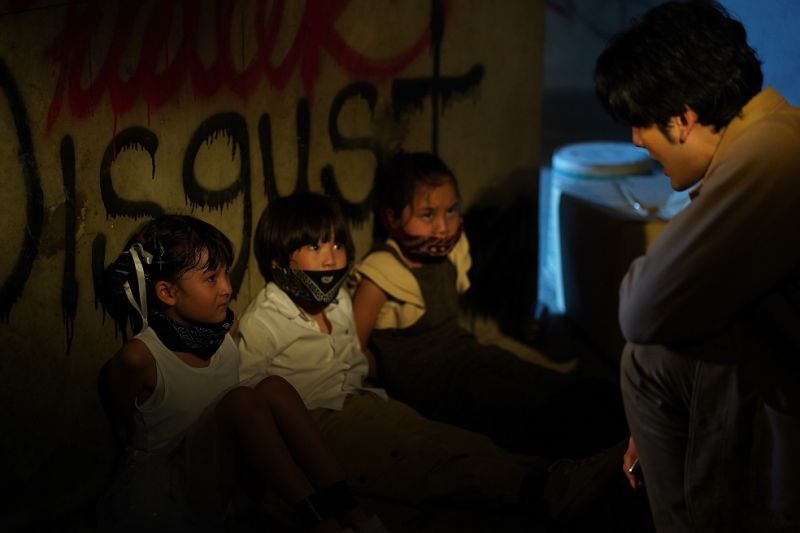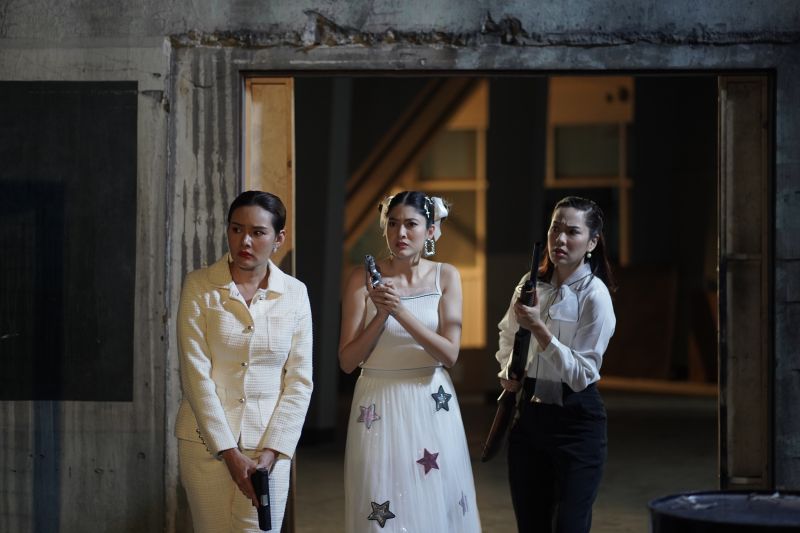 ฉากนี้ถ่ายทำกันที่ตึกร้าง การทำงานค่อนข้างลำบาก ทั้งฝุ่นทั้งอากาศ สัตว์ เด็ก เอฟเฟ็กส์เสียงปืนมาครบ ถ่ายทำกันตั้งเช้าจนเกือบเช้าของอีกวัน เรียกว่าอึดกันมากๆ ในขณะที่ผู้ใหญ่ของเราวิญญาณกำลังจะออกจากร่าง แต่3เด็กของเรายังทรงพลังไม่รู้ไปเอาเรี่ยวเอาแรงมาจากไหนกัน แม่ๆต้องขอปรบมือให้จริงๆ คนที่รับบทหนักสุดต้องยกให้ “บอมบ์ ธนิน” นอกจากจะต้องออกแรงสู้กับแม่ๆแล้ว ยังต้องใส่อารมณ์ความเป็นโรคจิตขั้นสุดทำเอาเครียดไปเหมือนกัน สาวๆของเราก็ไม่น้อยหน้า โดยเฉพาะ “หญิง รฐา”ออกแรงจนกางเกงขาดต้องเปลี่ยนตัวใหม่กันเลย ส่วน “จอย”กับ “มาร์กี้” วันนี้เหนื่อยกันสุดๆไปเลยค่ะ ใช้กำลังทั้งวันทั้งคืนจะหมดแรงแล้วค่ะ
