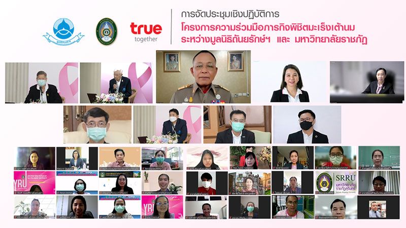 การประชุมเชิงปฏิบัติการโครงการความร่วมมือภารกิจพิชิตมะเร็งเต้านมระหว่างมูลนิธิถันยรักษ์ฯ แล มหาวิทยาลัยราชภัฏ จัดขึ้นระหว่างวันที่ 23-24 พฤษภาคม 2565 ในรูปแบบออนไซต์และออนไลน์ โดยมีผู้เชี่ยวชาญเข้าร่วมบรรยายให้ความรู้ ประกอบด้วย นายแพทย์เฉลิมเดชกรรณวัฒน์ แพทย์ผู้เชี่ยวชาญประจำศูนย์ ถันยรักษ์ฯ และ นายแพทย์ชลทิศ อุไรฤกษ์กุลที่ปรึกษาสำนักส่งเสริมสุขภาพ กรมอนามัยผู้พัฒนาหลักสูตร E-learning และระบบติดตามการบันทึกการตรวจเต้านมตนเอง (BSE Application) ร่วมกับมูลนิธิฯ และบริษัททรู คอร์ปอเรชั่น จำกัด (มหาชน)