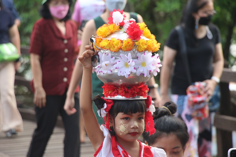 เช้าวันนี้ (4 มิ.ย.65)ฉ ที่ชุมชนชาวมอญบ้านวังกะ หมู่ 2 ต.หนองลู อ.สังขละบุรี จ.กาญจนบุรี สถานที่ท่องเที่ยวชื่อดังของอำเภอสังขละบุรี เต็มไปด้วยนักท่องเที่ยวที่เดินทางมาร่วมทำบุญตักบาตรตั้งแต่เช้าตรู่ เพื่อความเป็นสิริมงคล โดยนักท่องเที่ยวส่วนใหญ่เลือกสวมใส่ชุดพื้นเมือง สีสันสวยงาม เพื่อถ่ายภาพเก็บไว้เป็นที่ระลึก ก่อนจะเดินลงไปเดินเล่นบนสะพานอุตตมานุสรณ์ หรือสะพานมอญ ซึ่งเป็นสะพานไม้ที่ยาวที่สุดในประเทศไทย ท่ามกลางอากาศยามเช้าที่เย็นสบาย พร้อมทั้งใช้บริการปะแป้งทานาคา และเลือกซื้อดอกไม้เพื่อนำไปไหว้พระที่เมืองบาดาลที่เด็กๆ ชาวมอญ กะเหรี่ยง นำมาบริการนักท่องเที่ยวบนสะพานส่งผลให้บนสะพานมอญเต็มไปด้วยนักท่องเที่ยว ซึ่งเป็นภาพบรรยากาศที่นักท่องเที่ยวเต็มสะพาน