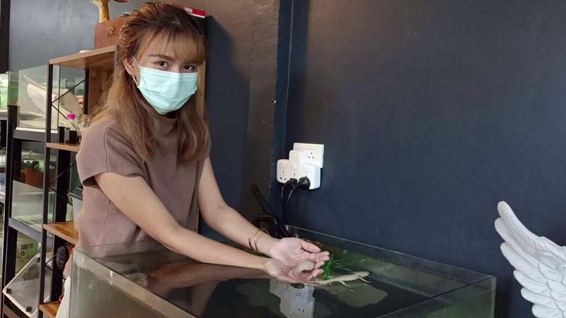 ล่าสุดผู้สื่อข่าวได้เดินทางพูดคุยกับทางเจ้าของเพจ Axolotl Ville TH ซึ่งอยู่ที่อำเภอเมืองราชบุรี เปืดเป็นร้านเล็กๆ ภายในบ้านอยู่ที่ ม.10 ตำบลเจดีย์หัก อำเภอเมือง จังหวัดราชบุรี ได้พบกับ น.ส.จุฑาทิพย์ แสงนาค อายุ 26 ปี เป็นเจ้าของเพจดังกล่าว โดยเจ้าตัวเปิดใจกับทีมข่าวว่า จากกรณีเรื่องราวที่ตนได้นำมาโพสต์เตือนภัย เพราะทางเพจได้รับข้อความจากสมาชิกรายหนึ่งได้มีการภายภาพ “หมาน้ำ” หรือ อาโซลอต (axolotl) ที่มีซื้อมาเลี้ยงได้ไม่ถึง 1 สัปดาห์ ได้ตายลง โดยเจ้าหนาน้ำมีหลากสีสัน ทั้งสีแดง สีน้ำเงิน สีดำ สีขาว สีม่วง และ สีชมพู จึงได้นำมาโพสต์เพื่อเป็นการเตือนภัย ว่าอย่าหาซื้อมาเลี้ยงเด็ดขาดเพราะ น้องหมาน้ำนอกจากจะมีราคาสูง และ ยังมีอายุไขเพียง 1 สัปดาห์ เท่านั้น และ ตามธรรมชาติ หมาน้ำจะไม่มีสำในลักษณะดังกล่าว