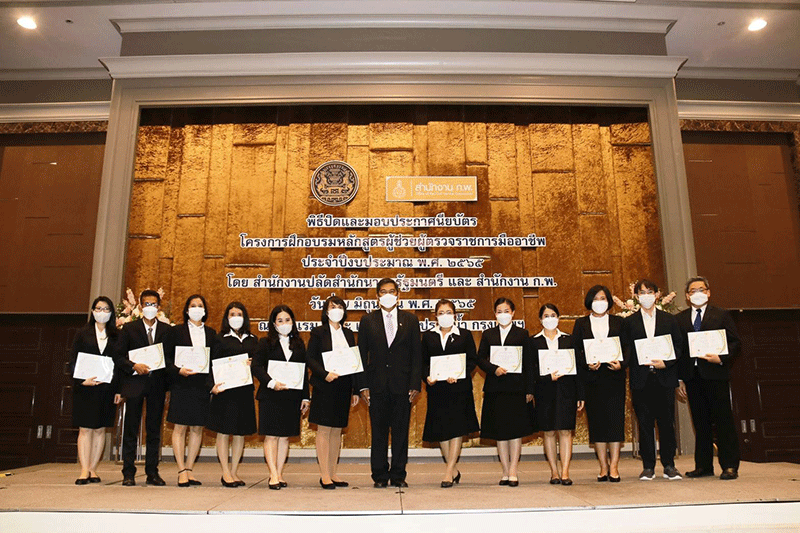 เมื่อวันที่ 7 มิถุนายน 2565 ดร.ธีรภัทร ประยูรสิทธิ ให้เกียรติเป็นประธานในพิธีปิดการฝึกอบรมและมอบประกาศนียบัตร แก่ผู้ผ่านการอบรมโครงการฝึกอบรมหลักสูตร “ผู้ช่วยผู้ตรวจราชการมืออาชีพ ประจำปีงบประมาณ พ.ศ.2565” พร้อมด้วย ดร.มงคลชัย สมอุดร รองปลัดสำนักนายกรัฐมนตรี นายพีระ ทองโพธิ์ หัวหน้าผู้ตรวจราชการสำนักนายกรัฐมนตรี(วิทยากรกิตติมศักดิ์ประจำกลุ่มสีฟ้า) ว่าที่ร้อยตรี พิเชียน ลิมป์หวังอยู่ อดีตผู้ว่าราชการจังหวัดตราด (วิทยากรกิตติมศักดิ์ประจำกลุ่มสีแดง) นายพุฒิพงศ์ สุรพฤกษ์อดีตผู้ตรวจราชการกระทรวงทรัพยากรธรรมชาติและสิ่งแวดล้อม(วิทยากรกิตติมศักดิ์ประจำกลุ่มสีส้ม) นางสุมิตรา อดิศัพท์ ผู้ตรวจราชการสำนักนายกรัฐมนตรี นางรุ่งรัตนา บุญ-หลง ผู้ตรวจราชการสำนักนายกรัฐมนตรี นางวนิดา ทิพย์โอสถ ผู้อำนวยการสถาบันพัฒนาการตรวจราชการ สำนักงานปลัดสำนักนายกรัฐมนตรี คณะทำงานและทีมงานการจัดอบรมสถาบันพัฒนาการตรวจราชการ สำนักงานปลัดสำนักนายกรัฐมนตรี ให้เกียรติร่วมพิธีและนำเสนอข้อคิดเห็น/ข้อเสนอแนะ อันเป็นประโยชน์อย่างยิ่งแก่ผู้ผ่านการอบรม รวม 35 ราย ณ ห้องเมย์แฟร์ บอลรูม บี ชั้น 11 โรงแรมเดอะเบอร์เคลีย์ ถนนเพชรบุรีประตูน้ำ กรุงเทพมหานคร