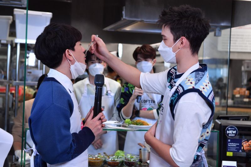 มาถึงไฮไลต์กิจกรรมสุดเอ็กซ์คลูซีฟที่ทุกคนรอคอย ที่ทำเอาทั้ง 5 หนุ่ม คริส-ปอร์เช่-จั๊มพ์-บูม-เสือ ถึงกับต้องร้องว้าว! กับการได้มาเรียนรู้เคล็ดลับรสเด็ดในการทำเมนู “ยำขนมจีนปลาดุกกรอบ” เมนูซิกเนเจอร์สุดแซ่บ จากร้าน “แอบแซ่บ สรงประภา” ร้านดังระดับตำนาน ที่ยกมาเสิร์ฟความอร่อยไว้ที่ “LOFTER @ Central Chidlom” (ลอฟท์เตอร์ แอท เซ็นทรัล ชิดลม) บอกเลยว่าทั้ง 5 หนุ่มตั้งใจเรียนรู้พร้อมโชว์เสน่ห์ปลายจวัก รวมถึงประลองฝีมือการทำอาหารกันอย่างสุดฤทธิ์ด้วยเครื่องครัวคุณภาพแบรนด์ชั้นนำจากแผนกโฮม ของห้างเซ็นทรัล แถมท่วงท่าการทำอาหารของแต่ละคนนั้นไม่ธรรมดา เดบิวท์เป็นเชฟกันได้สบายเลยทีเดียว ท่ามกลางแฟนๆ ที่คอยส่งเสียงเชียร์ไม่ขาด ส่วนรสชาติไม่ต้องพูดถึง การันตีความอร่อยยั่วๆ ด้วยสูตรลับเฉพาะจากร้าน ที่แซ่บสมชื่อร้านดังในตำนานเลยจริงๆ