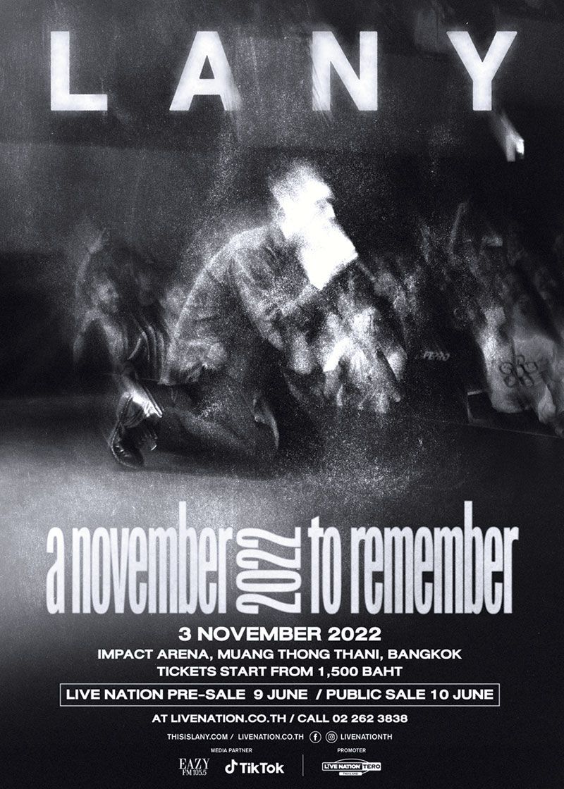 LANY วงอินดี้ป๊อปที่ได้รับการเสนอชื่อเข้าชิงรางวัล Pollstars2021 (โพลสตาร์ส 2021) สาขา Best Pop Tour (เบสท์ป๊อปทัวร์) พวกเขามีแฟนเพลงทั่วโลกเพิ่มขึ้นอย่างต่อเนื่องโดยมียอดสตรีมมากกว่า 3.5 พันล้านครั้ง มียอดชมวีดีโอมากกว่า 750 ล้านครั้ง และยอดขายตั๋วทั่วโลกมากกว่า 500,000 ใบ ในการประกาศทัวร์ล่าสุดนี้พวกเขายังคงเดินหน้าสร้างปรากฏการณ์ความนิยมอย่างต่อเนื่องหลังจากที่ประสบความสำเร็จอย่างสูงจากทัวร์ gg bb xx (จีจี บีบีเอ็กซ์เอ็กซ์) ในช่วงฤดู ใบไม้ร่วง ปี 2021 ที่ผ่านมา ซึ่งรวมถึงโชว์ที่ขายหมดใน Forum (ฟอรั่ม) และ Radio City (เรดิโอซิตี้) และการเปิดตัวอัลบั้ม gg bb xx ในเดือนมิถุนายน 2021 ที่เน้นแนวเพลงป๊อปและเป็นอัลบั้มที่ประสบความสำเร็จอย่างมากนอกเหนือจากทัวร์ของพวกเขาเองแล้ว LANY ยังได้ร่วมทัวร์ไปกับศิลปินดัง อย่าง Halsey (ฮาลซีย์), Ellie Goulding (เอลลีโกลดิง), Troye Sivan(ทรอยซีวาน) และ John Mayer(จอห์น เมเยอร์) อีกด้วย ล่าสุดพวกเขาได้ประกาศตารางเอเชียทัวร์ A November To Remember และจะมาเปิดการแสดงที่กรุงเทพฯ ในวันพฤหัสบดีที่3 พฤศจิกายน 2565 ซึ่งเป็นการกลับมาเปิดการแสดงในเมืองไทย ครั้งที่ 4 ของพวกเขา งานนี้แฟนเพลงของหนุ่มๆLANY ห้ามพลาด! กับทัวร์ล่าสุดของพวกเขา“LANY A November To Remember Live in Bangkok” (เลนี่อะโนเวมเบอร์ทูรีเมมเบอร์ไลฟ์อินแบงค็อก) ในวันพฤหัสบดีที่ 3 พฤศจิกายน 2565 ที่อิมแพ็ค อารีน่า เมืองทองธานีบัตรเข้าชมราคาเริ่มต้น 1,500 บาทเปิดจำหน่ายบัตรสำหรับสมาชิกไลฟ์เนชั่นในวันพฤหัสบดีที่ 9 มิถุนายน ทาง www.livenation.co.th หรือที่ไทยทิคเก็ตเมเจอร์ทุกสาขาและเปิดจำหน่ายบัตรอย่างเป็นทางการตั้งแต่วันศุกร์ที่ 10 มิถุนายน เป็นต้นไปสอบถามรายละเอียดเพิ่มเติม โทร.02-2623838 โดยงานนี้จะจัดขึ้นภายใต้มาตรการป้องกันการแพร่ระบาดของโควิด-19 ตามกฎของกระทรวงสาธารณสุขเพื่อให้ผู้ชมปลอดภัยและสนุกกับการชมการแสดงได้อย่างเต็มอิ่มสามารถติดตามความเคลื่อนไหวคอนเสิร์ตได้ที่เฟซบุ๊ค www.facebook.com/livenationth และอินสตาแกรม https://www.instagram.com/livenationth/และทวิตเตอร์https://twitter.com/livenationth