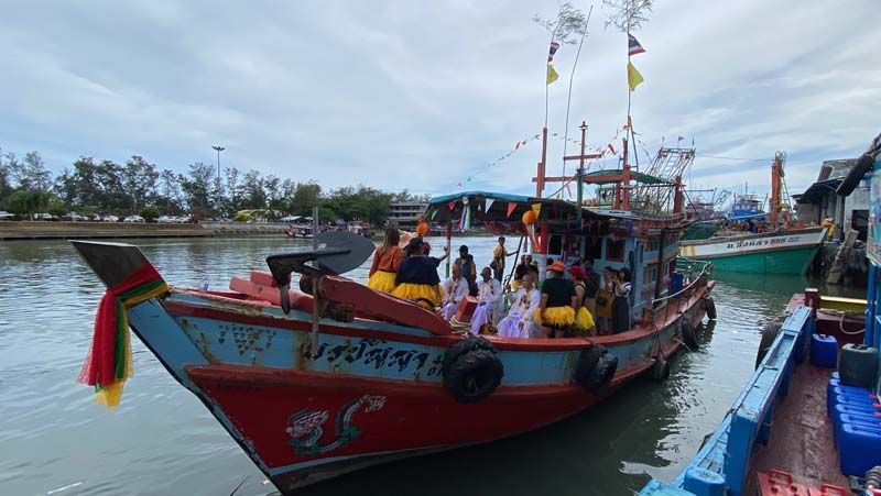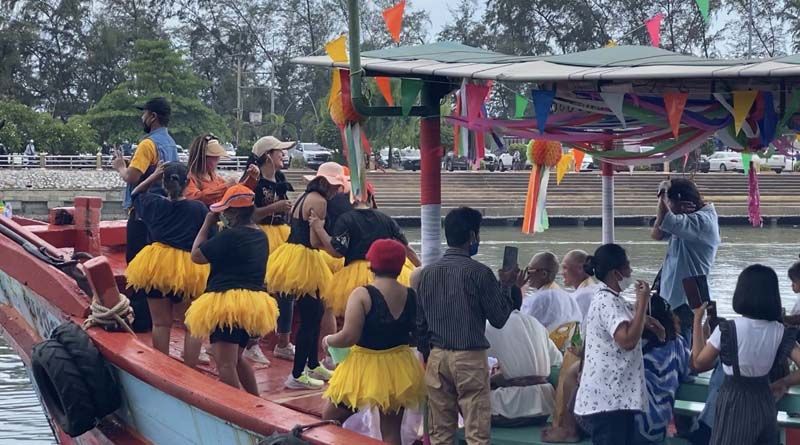 ซึ่งขบวนเรือทั่งหมด 13 ลำ มีเรือตรวจการณ์แล่นนำหน้า เรือหัวขบวนชื่อเรือ พรปัญญา มีนาคทั้งหมด 3 คน อยู่บนเรือ ประกอบไปด้วย นาคภาณุพงษ์ ทองทราย อายุ 31 ปี นาค วีรยุทธ ยวดยิ่ง อายุ 26 ปี และ นาคจีรยุทธ ยวดยิ่ง อายุ 24 ปี สามพี่น้อง พร้อมด้วย บิดดา มารดา ญาติสนิทและเพื่อน ที่ร่วมขบวนแห่อยู่บนเรือ มีทีม แดนเซอร์ เต้นสนุกสนานครื้นเครง บางช่วง พ่อนาคก็ลุกขึ้นไปเต้นพร้อมกับบรรดาเพื่อนๆส่วนเรืออีก 12 ลำก็ตกแต่งด้วยธงหลากสี แล่นตามลำแรก เป็นริ้วขบวนที่สวยงามสร้างความตื่นตาตื่นใจให้กับผู้ที่ผ่านไปมา