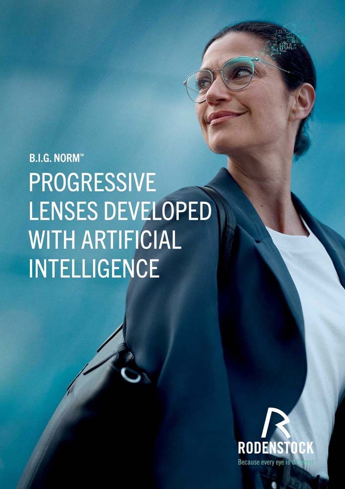 ปัญญาประดิษฐ์ หรือ AI ที่ประมวลผลร่วมกับชุดข้อมูลไบโอเมตริกเฉพาะบุคคลที่ใหญ่ที่สุดที่ Rodenstockเก็บรวบรวมไว้กว่า 500,000 ชุด จากการวัดสายตาด้วยเครื่อง DNEye® Scanner ของ Reodenstock ที่เข้าถึงข้อมูลไบโอเมตริกอย่างแท้จริง ทำให้สามารถสร้างแบบจำลองไบโอเมตริกของดวงตาได้แม่นยำมากขึ้นแม้จะมีเพียงค่าจากใบสั่งเลนส์ตามมาตรฐาน 4 ค่าแบบดั้งเดิมของผู้สวมใส่ แต่เลนส์โปรเกรสซีฟที่ได้นี้ กลับมีระดับความแม่นยำทางไบโอเมตริกที่สูงขึ้นอย่างเห็นได้ชัดผู้บริโภคพึงพอใจมากขึ้นเพราะใช้เวลาในการปรับตัวเข้ากับเลนส์แว่นตาใหม่น้อยลง และการมองเห็นก็คมชัดยิ่งขึ้น Rodenstock เรียกเลนส์ AI รุ่นใหม่นี้ว่า B.I.G. NORM™