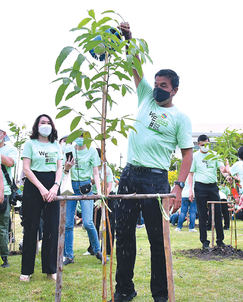 โดย เดอะมอลล์ กรุ๊ป ร่วมสนับสนุนกรุงเทพมหานคร จัดกิจกรรมโครงการรณรงค์เนื่องในวันสิ่งแวดล้อมโลก 2565 (World Environment Day 2022) ผ่าน 2 กิจกรรม ได้แก่ กิจกรรมปลูกป่านิเวศในเมือง ณ สวน 9 เนินเดินตามรอยพ่อเขตบางบอน เพื่อเพิ่มพื้นที่สีเขียวและเป็นแหล่งกำเนิดความหลากหลายทางธรรมชาติสร้างระบบนิเวศที่สมดุลให้แก่พื้นที่ โดยร่วมสนับสนุนต้นไม้ประจำวันเกิดและเสื้อวันสิ่งแวดล้อมโลกและกิจกรรม“รวมพลเก็บขยะในแม่น้ำเจ้าพระยาและปลูกต้นไม้”นำโดย ชัชชาติ สิทธิพันธุ์ ผู้ว่าราชการกรุงเทพมหานคร ณ บริเวณลานใต้สะพานพระราม 8และสวนหลวงพระราม 8 เขตบางพลัด โดย 17 สำนักงานเขต ที่อยู่ติดริมแม่น้ำเจ้าพระยา กรมเจ้าท่าชมรมนิยมพาย หน่วยงานสังกัดกรุงเทพมหานครและภาคีเครือข่ายด้านสิ่งแวดล้อม ได้ร่วมกันเก็บขยะและวัชพืชในแม่น้ำเจ้าพระยา รวมทั้งรณรงค์ไม่ทิ้งขยะและไขมันลงในแม่น้ำและคูคลอง และปลูกต้นไม้ภายในสวนหลวงพระราม 8 เพื่อให้เจริญเติบโตให้ร่มเงา อีกทั้งช่วยดูดซับคาร์บอนไดออกไซด์และสร้างออกซิเจน นอกจากนี้ 50 สำนักงานเขต ยังได้จัดกิจกรรมดูแลรักษาสิ่งแวดล้อมในพื้นที่ อาทิ การปลูกต้นไม้เพื่อเพิ่มพื้นที่สีเขียว กิจกรรมการลดและคัดแยกขยะตั้งแต่ต้นทาง การจัดเก็บขยะในแม่น้ำคูคลอง การรณรงค์ลดใช้พลังงาน และลดมลพิษทางอากาศ เพื่อร่วมเป็นแรงผลักดันในโครงการรณรงค์เนื่องในวันสิ่งแวดล้อมโลกปีนี้อีกด้วย