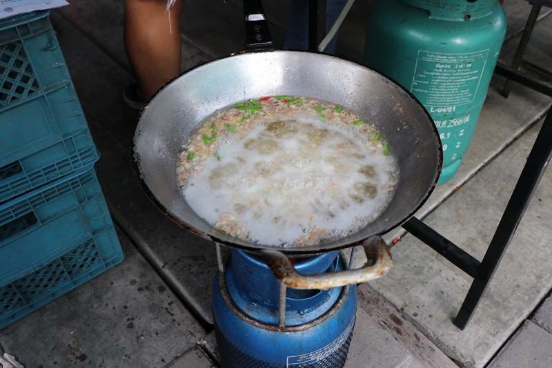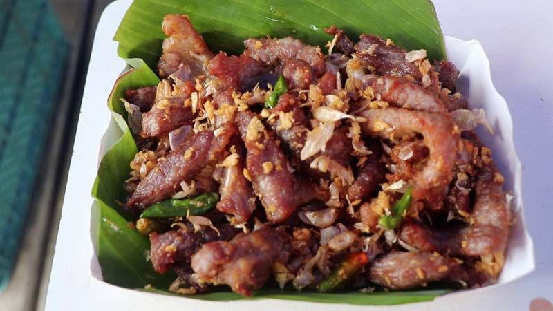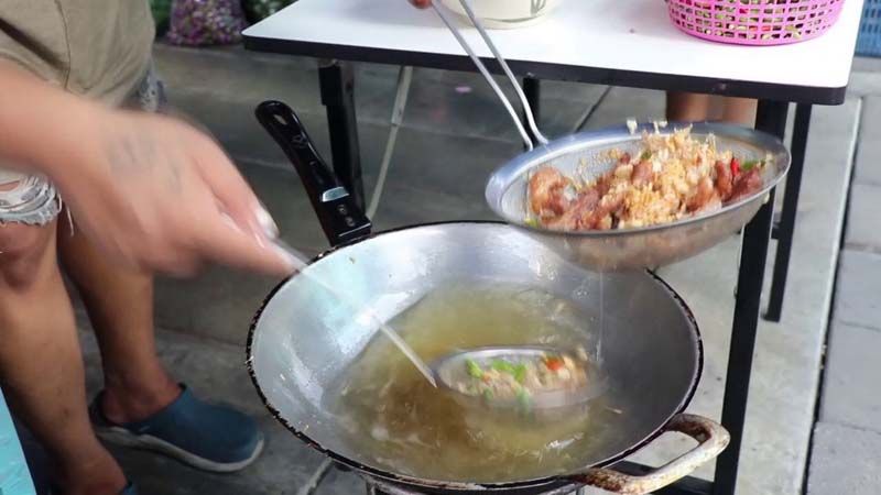12 มิ.ย.65 ที่บริเวณตลาดเกษตรสุวพันธุ์ ต.ตลาดหลวง อ.เมือง จ.อ่างทอง พบร้านขายหมูทอดกระเทียมพริกสดในราคา 3 ขีด 100 บาท พบลูกค้าแห่ยืนรอจองคิวซื้อกันอย่างคึกคัก ในขณะที่พ่อค้าทอดหมูที่ส่งกลิ่นหอมกรุ่นด้วยกระเทียมเจียว เรียกลูกค้าเมื่อได้ลิ้มลองพบว่า หมูกรอบนอกนุ่มใน กระเทียมเจียวกรอบๆหอมกรุ่น มีพริกขี้หนูสวนที่ทอดเพิ่มทีเด็ด โดยเป็นหมูที่หันชิ้นยาวพอคำ นำไปหมักตามสูตรลับเฉพาะที่หมักไว้ เมื่อลูกค้าสั่งก็จะทำการนำเนื้อหมูไปชั่งจำนวน 3 ขีด แล้วคลุกเค้าด้วยแป้งทอดกรอบ นำลงทอดในกระทะ เมื่อสุกได้ที่ก็ตามด้วยกระทียมสับจำนวน2ช้อน และพริกขึ้หนูสวน1ช้อนทอดลงไป จนหอมกรอบพร้อมตักเสิร์ฟ