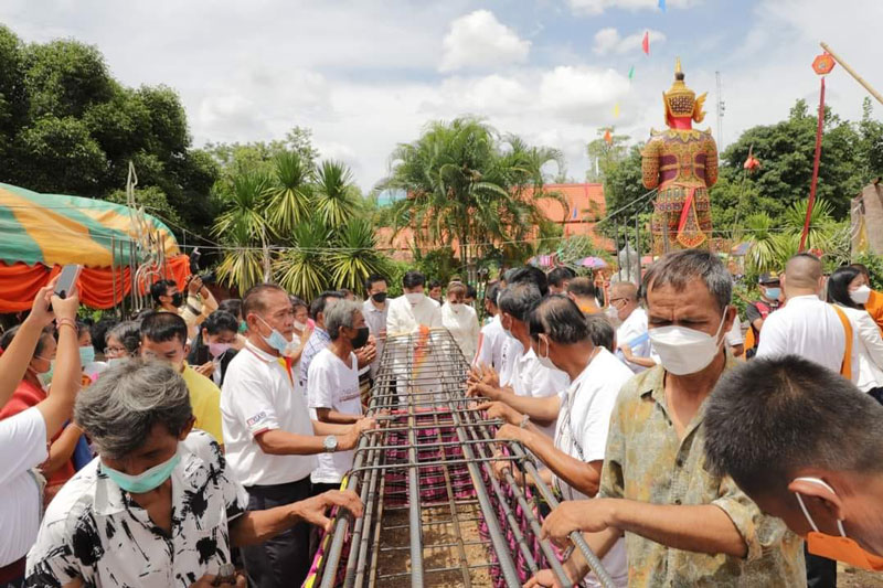 อัศจรรย์! พระอาทิตย์ทรงกลดวางศิลาฤกษ์พระธาตุกุดดินจี่-เทวาภิเษกเหรียญท้าวเวสสุวรรณ (ปู่พญาคำแดง)