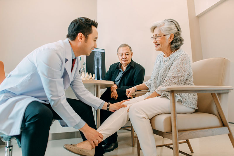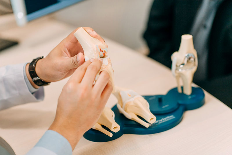 นายแพทย์สมบัติ โรจน์วิโรจน์ ศัลยแพทย์กระดูกและข้อเฉพาะทางด้านข้อสะโพกและข้อเข่า ศูนย์ข้อสะโพกและข้อเข่าโรงพยาบาลกรุงเทพอินเตอร์เนชั่นแนล อธิบายว่า โรคข้อเข่าเสื่อม (Knee Arthritis) จะมีอาการปวดเข่า เข่าบวม เข่าอักเสบ เดินแล้วมีเสียงก๊อบแก๊บในข้อเข่า ไม่สามารถยืดหรือเหยียดขาได้สุดรวมทั้งการเดินขึ้นลงบันไดที่ลำบาก เกิดปัจจัยเสี่ยง ได้แก่ อายุที่เพิ่มมากขึ้น เพศหญิง การที่มีน้ำหนักตัวเกิน ซึ่งในเพศหญิงมีความเสี่ยงมากกว่าผู้ชาย การได้รับแรงกระแทกซ้ำๆ ที่ข้อเข่าการเกิดอุบัติเหตุที่บริเวณข้อเข่าและพันธุกรรม ถ้าผิวของข้อเข่าได้รับความเสียหายอย่างรุนแรงจากการอักเสบของข้อเข่าหรืออุบัติเหตุ จะรู้สึกปวดแม้ขณะนั่งหรือนอน แพทย์จะการตรวจวินิจฉัยข้อเข่าเสื่อม ทำได้โดย การซักประวัติสุขภาพ รวมทั้ง การตรวจร่างกาย ตรวจการทำงานของเข่า เช่น X-ray เพื่อดูพยาธิสภาพ ความเสียหายของเข่าที่เสื่อม การตรวจคลื่นแม่เหล็กไฟฟ้า (MRI) เพื่อดูสภาพของกล้ามเนื้อ และเนื้อเยื่อต่างๆ รอบกระดูก