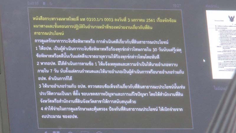 ต่อมาปี 2561 กระทรวงมหาดไทยมีหนังสือถึง ผวจ.ทุกจังหวัด โดยมอบหมายให้กรมการปกครองร่วมกับกรมที่ดิน และกรมส่งเสริมการปกครองท้องถิ่น จัดทำสรุปขั้นตอนและแนวทางปฏิบัติในอำนาจหน้าที่ของหน่วยงานที่เกี่ยวกับที่สาธารณประโยชน์ มีทั้งหมด 5 เรื่องด้วยกัน หนึ่งในนั้นคือการดูรักษา การระงับข้อพิพาทหรือการดำเนินคดีเกี่ยวกับที่ดินสาธารณประโยชน์ฯ กระทั่งปี 2565 จังหวัดนครพนมได้ออกหนังสือลงวันที่ 18 พฤษภาคม 2565 สั่งให้นายอำเภอทุกอำเภอ นายก อบจ.ฯ และ นายกเทศมนตรีเมืองนครพนม แก้ไขปัญหาการบุกรุกที่ดินของรัฐเป็นรูปธรรมฯ โดยเร่งรัดสำรวจตรวจสอบและระมัดระวังอย่าให้มีการบุกรุกที่ดินของรัฐเป็นอันขาด ในท้ายคำสั่งระบุว่าถ้าปรากฏว่าการบุกรุกที่ดินของรัฐดังกล่าว มีเจ้าหน้าที่ของรัฐให้การสนับสนุนช่วยเหลือหรือมีส่วนร่วมด้วย ให้ดำเนินการทางวินัยและคดีอาญาโดยเด็ดขาดทุกรายไป