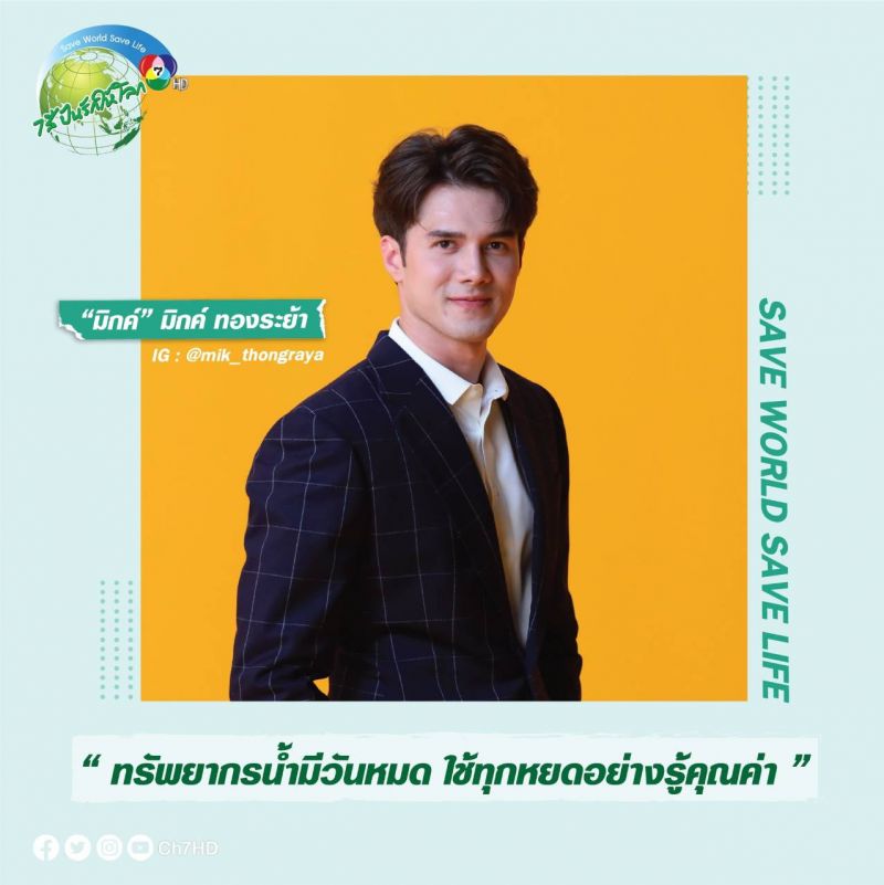 มิกค์ ทองระย้า เป็นตัวแทนนักแสดงเผยเทคนิคในการดูแลทรัพยากรธรรมชาติว่า “เพราะปัญหาสิ่งแวดล้อมรอไม่ได้ เราสามารถช่วยกันคนละไม้คนละมือ ดูแลให้ทรัพยากรธรรมชาติอยู่กับเราอย่างยั่งยืน โดยเริ่มจากเรื่องใกล้ตัว อาทิ ใช้น้ำทุกหยดอย่างรู้คุณค่า หรือเพิ่มพื้นที่สีเขียวในบริเวณบ้าน ด้วยการปลูกต้นไม้คนละต้น เพื่อสร้างอากาศบริสุทธิ์ หรือแม้แต่การปลูกพืชผักสวนครัว นอกจากช่วยปรับลดอุณหภูมิแล้ว ยังช่วยประหยัดเงินได้ด้วยครับ”