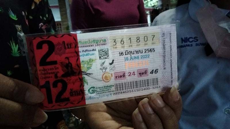 วันที่ 16 มิถุนายน 2565 หลังผลการออกสลากกินแบ่งรัฐบาล งวดประจำวันที่ 16 มิถุนายน 2565 โดยรางวัลที่ 1 ออกหมายเลข 361807 ปรากฏว่าที่ จ.นครศรีธรรมราช มีผู้ถูกรางวัลที่ 1 จำนวน 2 ใบ เป็นเงินรางวัล 12ล้านบาท คือ นางสุภารัตน์ สุวรรณ อายุ 42ปี อยู่บ้านเลขที่ 245 หมู่ 2 ต.กำแพงเซา อ.เมือง จ.นครศรีธรรมราช