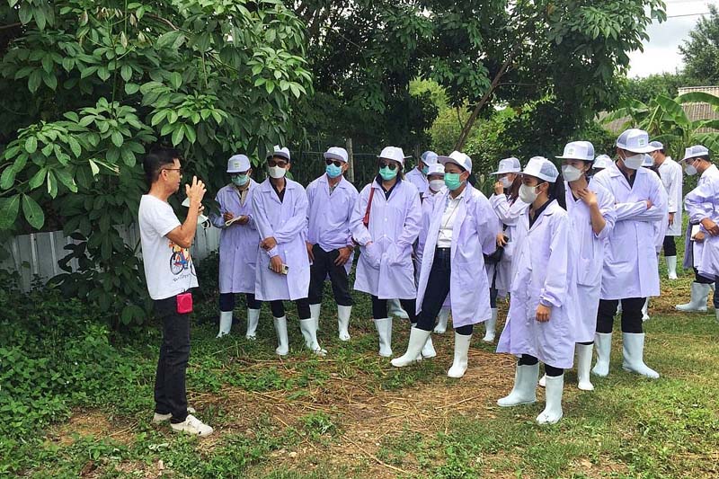 ภักดี ไทยสยาม ประธานกรรมการ บริษัท หมู่บ้านเกษตรกรรมหนองหว้า จำกัด อ.พนมสารคาม จ.ฉะเชิงเทรา พร้อมคณะผู้บริหารและเกษตรกรหมู่บ้านเกษตรกรรมหนองหว้า ต้อนรับ นพ.สุทธิพงษ์ อาจกมลผู้อำนวยการโรงพยาบาลศรีมโหสถ พร้อมคณะผู้บริหารโรงพยาบาลศรีมโหสถ จ.ปราจีนบุรี ตลอดจนคณะผู้บริหารและเพื่อนพนักงาน บริษัท เจริญโภคภัณฑ์อาหาร จำกัด (มหาชน) หรือซีพีเอฟ จากธุรกิจไก่เนื้อและเป็ดเนื้อ ธุรกิจสัตว์น้ำ ธุรกิจห้าดาวและธุรกิจฟู้ดคอร์ทและจัดเลี้ยง ธุรกิจการค้าในประเทศและหน่วยงานพัฒนาความยั่งยืน เข้าเยี่ยมชมความสำเร็จด้านการบริหารจัดการองค์กรและองค์ความรู้ชุมชนอาทิ โครงการธนาคารน้ำใต้ดิน โครงการปลูกป่าเชิงนิเวศในชุมชนเฉลิมพระเกียรติรัชกาลที่ 9 โครงการไก่ไข่อินทรีย์ และโครงการผักอินทรีย์