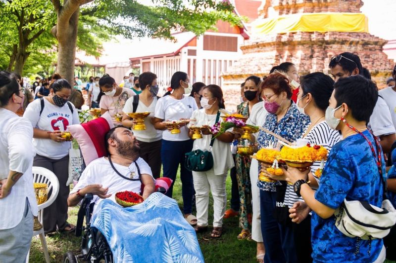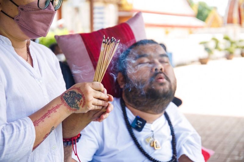 วันนี้ (23 มิถุนายน 2565) บ้านมหาเวทย์ ปส ได้จัดงาน อาบน้ำมนต์ชุบราศีที่ วัดปรางค์หลวง จังหวัดนนทบุรี ท่ามกลางลูกศิษย์ที่ศรัทธาในตัว อาจารย์ประสงค์ หมอผีตาทิพย์ เข้าร่วมงานเป็นจำนวนมากภายในงานมีดาราชื่อดังอย่าง ฟิล์ม-รัฐภูมิ โตคงทรัพย์ ให้เกียรติเข้าร่วมในพิธีด้วย โดย หนุ่มฟิล์ม เผยถึงการมาร่วมงานในครั้งนี้ว่า