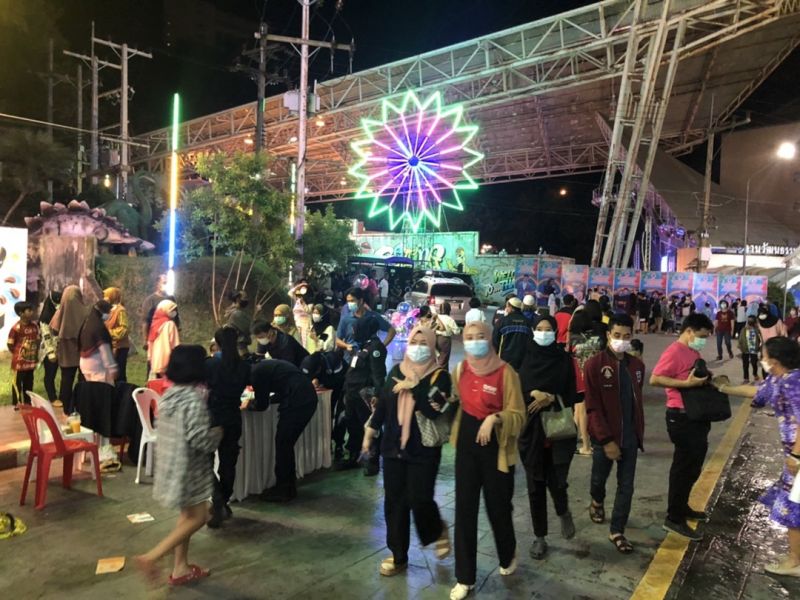 งานนี้เงินสะพัด! นักท่องเที่ยวทั้งชาวไทยและชาวมาเลเซียร่วมงานของดีเมืองเบตงและงานกิ่งกาชาดอำเภอเบตง ปี’ 65 กันคึกคัก หลังสถานการณ์โควิดคลี่คลาย ที่บริเวณสวนน้ำและบริเวณอุโมงค์เบตงมงคลฤทธิ์ (ฝั่งรูปปั้นไก่) เทศบาลเมืองเบตง
