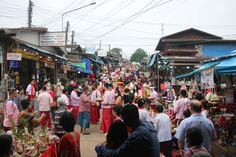 ผู้สื่อข่าวรายงานจาก จ.กาญจนบุรี ว่า เช้าวันนี้ (26 มิถุนายน 2565) ที่สะพานไม้อุตตมานุสรณ์ หรือสะพานมอญ และชุมชนชาวมอญบ้านวังกะ ต.หนองลู อ.สังขละบุรี จ.กาญจนบุรี มีการใส่บาตรพระสงฆ์จากวัดวังก์วิเวการาม หรือวัดหลวงพ่ออุตตมะ ด้วยการสวมใส่ชุดพื้นเมืองชาวมอญและชาวกะเหรี่ยง ที่ผู้ประกอบการชุดใส่บาตรมีไว้ให้บริการ พ่วงกับข้าวสวย ดอกไม้ และขนมน้ำดื่ม ที่เตรียมไว้ในชุดใส่บาตร สนนราคาชุดละ 99 บาท โดยนักท่องเที่ยวส่วนใหญ่ยังคงสวมหน้ากากอนามัย เนื่องจากการใส่บาตรมีผู้คนร่วมกิจกรรมเป็นจำนวนมาก เช่นเดียวกับพระสงฆ์ที่ต่างก็สวมหน้ากากอนามัยเช่นกัน