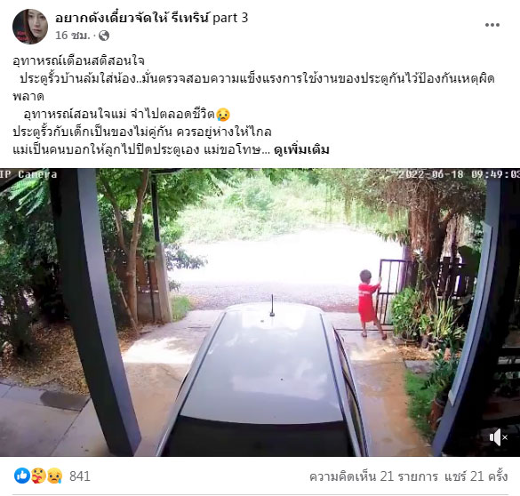 27 มิ.ย.65 เพจเฟซบุ๊ก อยากดังเดี๋ยวจัดให้ รีเทิร์น part 3 โพสต์คลิปเตือนภัยรั้วประตูบ้านล้มทับเด็ก