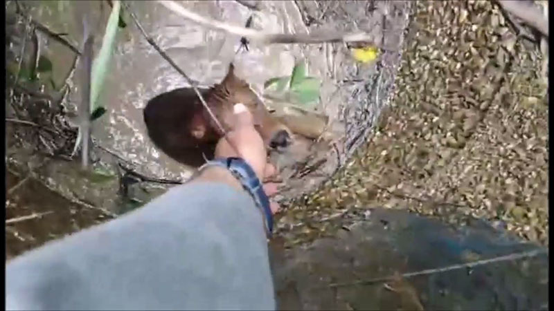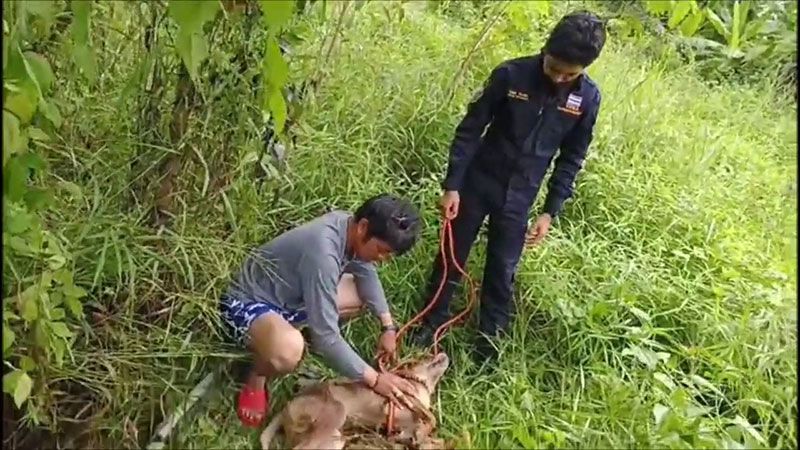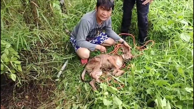 โดยชาวบ้านบอกว่า เห็นน้องหมาที่ตกท่อร้องมาแล้ว 2 วัน ตอนแรกชาวบ้านไม่ได้สนใจแต่วันนี้ร้องเหมือนจะหมดแรง ชาวบ้านจึงเดินไปดูเห็นลอยคออยู่ในบ่อน้ำ จึงรีบแจ้งให้คนมาช่วยรอดตายอย่างปฏิหาริย์ สำหรับน้องหมาที่ตกลงไปเป็นสุนัขเพศผู้ สีน้ำตาล อายุราว 2 ปี เบื้องต้นยังไม่ทราบว่าเป็นน้องหมาตัวนี้เป็นของใคร เชื่อว่าจะมีเจ้าของเพราะน้องหมาแสนรู้ ฟังคำพูดของคนได้รู้เรื่อง