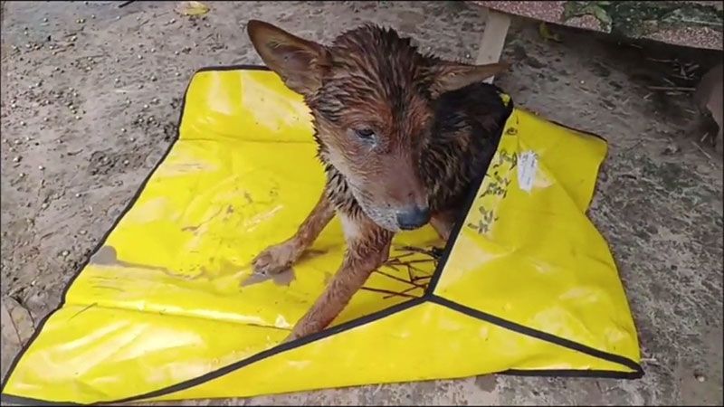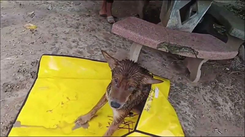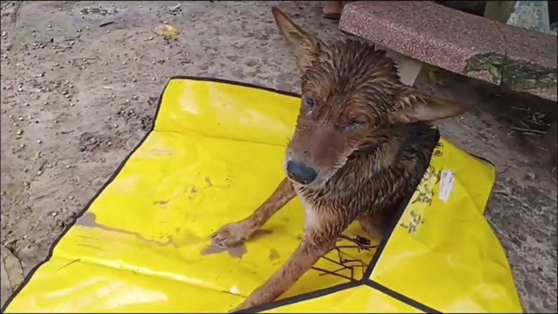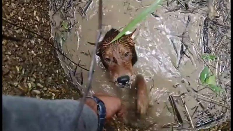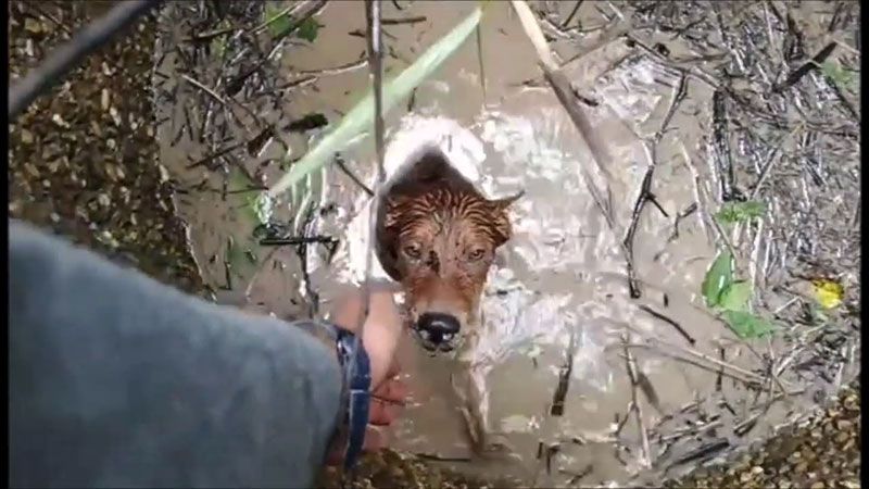 โดยบ่อร้างที่น้องหมาตกลงไปบ่อซีเมนต์ ที่ชาวบ้านทำขึ้นมาเพื่อเก็บน้ำกินน้ำใช้ มีวัชพืชขึ้นรกจนปกคลุมมิด โชคดีที่บ่อมีความลึกไม่มาก จากนั้นอาสาฯได้ทำการช่วยเหลือโดยพยายามจับขาหน้าเพื่อดึงขึ้นมา แต่ก็หลุดมือหลายครั้ง ในฮึดสุดท้ายน้องหมาได้ยกขาหน้าขึ้นมา มือของจิตอาสาที่ช่วยคว้าเอาไว้ได้ ก่อนน้องหมาจะจมลงก้นบ่อรอดตาย ชาวบ้านถึงกับน้ำตาไหลที่ช่วยน้องหมาไว้อย่างปลอดภัย แต่สภาพน้องหมาอิดโรยหนาวสั่น พอน้องหมาขึ้นมาจากบ่อได้ ก็ยกขาหน้าทั้งสอง เหมือนอยากจะขอบคุณที่ช่วยเหลือด้วย