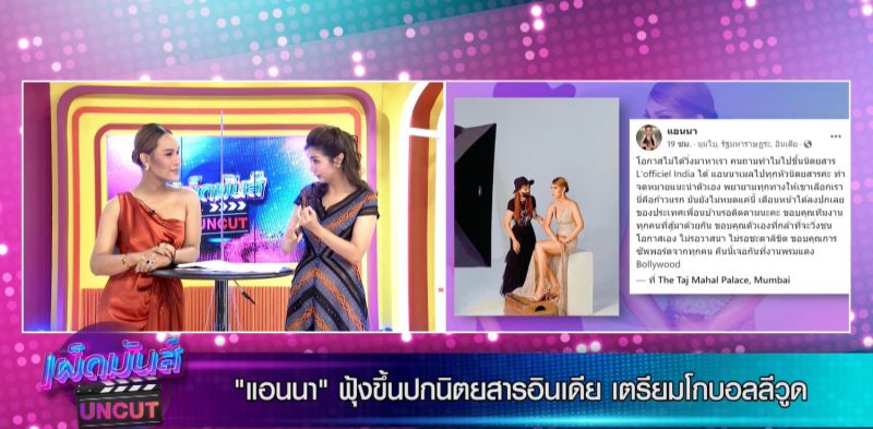 ชาวเน็ตแห่ยินดี หลังเห็นภาพ แอนนา พิธีกรดังรายการเผ็ดมันส์บันเทิง ช่อง 8ที่ได้ขึ้นปกนิตยสารชื่อดังระดับโลก อย่าง L’Officialอินเดีย ฉบับเดือนมิถุนายน ที่ผ่านมา งานนี้ แอนนา เลยขอมาเปิดใจร่วมกับ จ๊ะจ๋า พริมรตา พิธีกรร่วม ผ่านรายการ “เผ็ดมันส์อันคัท”ได้รับเลือกขึ้นปกเพราะตอบคำถามถูกใจ และยังมีภาพได้ไปร่วมโต๊ะอาหารกับซุปตาร์ชื่อดังของอินเดีย อีกต่างหาก