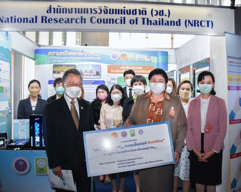 ดร.วิภารัตน์ ดีอ่อง ผู้อำนวยการสำนักงานการวิจัยแห่งชาติ ได้นำคณะนักวิจัยที่ได้รับทุนสนับสนุนการวิจัยจากสำนักงานการวิจัยแห่งชาติ (วช.) นำผลงานเข้าร่วมแสดงนิทรรศการเนื่องในโอกาสครบรอบ 90 ปี รัฐสภาไทย ระหว่างวันที่ 27 มิถุนายน – 5 กรกฎาคม 2565 ณ อาคารรัฐสภา พร้อมกันนี้ วช. ได้มอบผลงานการพัฒนานวัตกรรม “เครื่องวัดฝุ่น PM2.5 ระบบเซ็นเซอร์ DustyBoy” จำนวน 3 เครื่อง ให้แก่รัฐสภา เพื่อนำไปใช้ประโยชน์ในการเฝ้าระวังและเตือนภัยฝุ่น PM2.5
