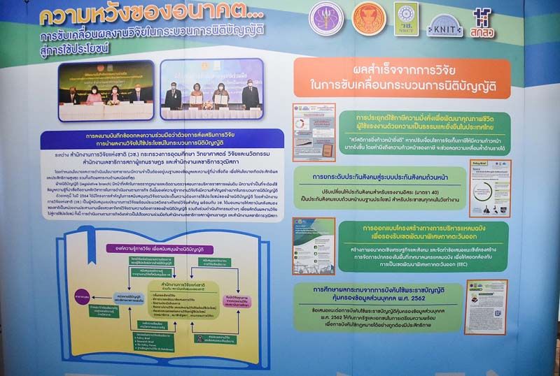 ดร.วิภารัตน์ ดีอ่อง ผู้อำนวยการสำนักงานการวิจัยแห่งชาติ เปิดเผยว่า สำนักงานการวิจัยแห่งชาติ (วช.) กระทรวงการอุดมศึกษา วิทยาศาสตร์ วิจัยและนวัตกรรม เป็นเครือข่ายความร่วมมือที่สำคัญกับรัฐสภาไทย โดยการนำองค์ความรู้จากงานวิจัยเชิงนโยบายไปใช้ประโยชน์ ตามบันทึกข้อตกลงความร่วมมือว่าด้วยการส่งเสริมการวิจัยและการนำผลงานวิจัยไปใช้ประโยชน์ในกระบวนการนิติบัญญัติ และเนื่องในโอกาสครบรอบ 90 ปี รัฐสภาไทย วช. ได้รับเชิญจากสำนักงานเลขาธิการสภาผู้แทนราษฎรเข้าร่วมในพิธีเปิดโครงการกิจกรรมบรรยายพิเศษ เสวนาทางวิชาการ และร่วมจัดแสดงนิทรรศการ โดยผลงานที่ วช. นำไปร่วมแสดงนิทรรศการนั้น เป็นโครงการที่ วช. ให้ทุนสนับสนุนการวิจัยในเชิงนโยบายและนิติบัญญัติ เช่น