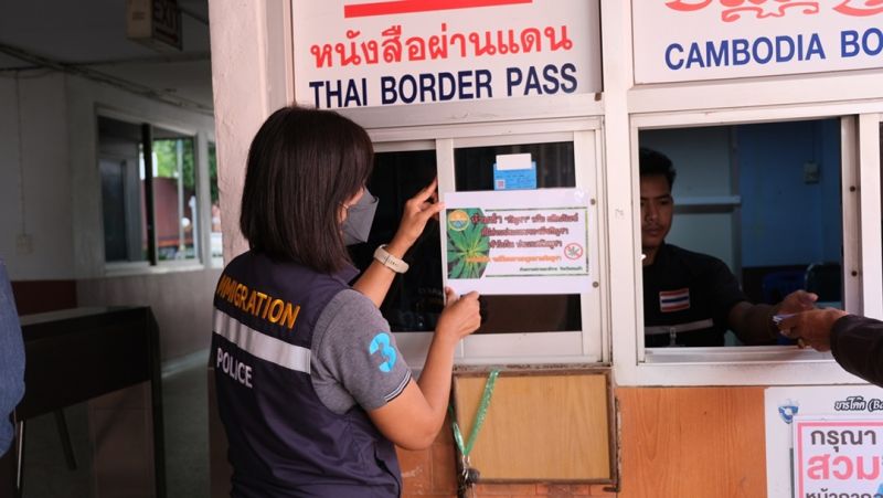นอกจากนี้ นายชนาธิป โคกมณี นายอำเภออรัญประเทศ จ.สระแก้ว ได้ประสานไปยัง พ.ต.ท.จิรพัฒน์ เขียวศิริ สว.ส.ทท.สระแก้ว(สารวัตรสถานีตำรวจท่องเที่ยวสระแก้ว) ส่ง จนท.ตร.ทท.สระแก้ว มาร่วมประชาสัมพันธ์แจ้งเตือนนักท่องเที่ยวชาวต่างชาติที่เดินทางจากประเทศไทยออกไปท่องเที่ยวในประเทศกัมพูชา ห้ามนำพืชกัญชาหรือผลิตภัณฑ์ที่มีส่วนผสมของกัญชาจากประเทศไทยออกไปประเทศกัมพูชาอย่างเด็ดขาดเนื่องจากผิดกฏหมายกัมพูชา หวั่นนักท่องเที่ยวต่างชาติไม่เข้าใจอาจนำผลิตภัณฑ์ที่มีส่วนผสมของกัญชาที่ซื้อจากประเทศไทยติดตัวออกไปประเทศกัมพูชาด้วย – 003