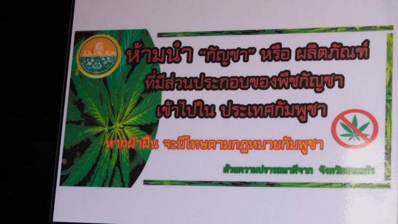 นอกจากติดป้ายเตือนที่อาคารตรวจผู้โดยสารฯขาออกแล้ว จนท.ได้นำแผ่นป้ายมาติดไว้ที่บริเวณช่องตรวจบุคคลประจำยานพาหนะขาออก ด่าน ตม.อรัญประเทศฯ เพื่อแจ้งเตือนพนักงานขับรถบรรทุกขนส่งสินค้าที่นำสินค้าออกไปส่งประเทศกัมพูชา ห้ามนำพืชกัญชาหรือผลิตภัณฑ์ที่มีส่วนผสมของกัญชาออกไปประเทศกัมพูชาอย่างเด็ดขาด เนื่องจากตามกฏหมายของประเทศกัมพูชากัญชายังคงเป็นยาเสพติด ชนิดหนึ่งผู้ครอบครองหรือผู้เสพมีโทษตามกฎหมายกัมพูชา